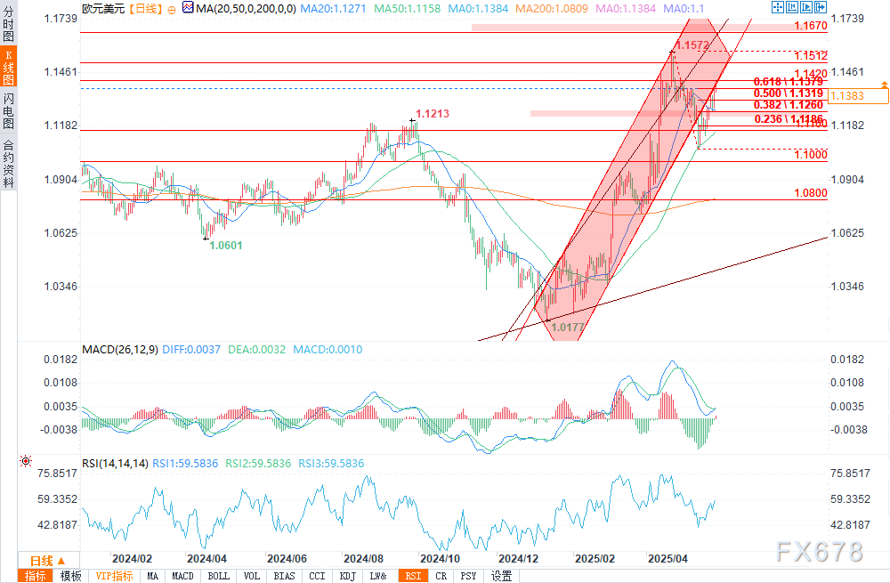 周一(5月26日)欧盘时段,欧元兑美元走势积极。此前投资者获悉,特朗普总统在与欧盟委员会主席冯·德莱恩通话后,决定将对欧盟商品加征50%关税的实施时间从原计划的6月1日推迟至7月9日,以便为谈判争取更多时间。 ![]() 技术分析 ![]() 短期趋势仍偏多头,相对强弱指数(RSI)持续运行于中性值50上方,移动平均收敛散度指标(MACD)在红色信号线和零轴上方均保持上行势头。不过,随机震荡指标在超买阈值70附近徘徊,需警惕回调风险。 若汇率实现决定性突破并站稳更高水平,可能重新测试4月高点(约1.1512)。若该水平被有效突破,涨势可能延伸至趋势线压制区间(1.1670–1.1720)。再往上,多头可能瞄准前一轮跌势161.8%斐波那契扩展位(1.1885),之后挑战关键心理关口1.2000。 若汇率在1.1420附近出现看跌逆转,可能在20日简单移动平均线(SMA,1.1270)与1.1230区间获得支撑。50日SMA仍是关键支点(近1.1160);若跌破该水平,可能引发更深层次的下跌,指向整数关口1.1000。 总结 欧元兑美元仍具上行潜力,需持续站稳1.1415上方以触发下一轮看涨行情。 北京时间18:26,欧元兑美元报1.1383/84,涨幅0.18%。 |