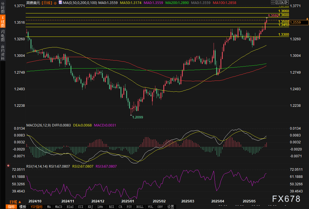 周一(5月26日),英镑兑美元延续近期强势表现,亚欧时段一度逼近1.3600整数关口,刷新三年高位,随后小幅回落至1.3556附近,日内涨幅0.16%。美元指数则延续疲软走势,跌至98.70附近,创一个月新低。英镑的强势表现主要受到美元走弱和英国经济数据向好的双重支撑,但技术面超买信号值得警惕。 ![]() 英镑本周初的强势表现,核心驱动力来自美元全面走弱和英国经济数据的持续向好。上周五,特朗普宣布对欧盟商品加征50%关税的决定一度引发市场避险情绪升温,但周日其又宣布将关税生效日期从6月1日推迟至7月9日,市场风险偏好随之改善。这一变化使得美元进一步承压,而英镑等非美货币则获得提振。 不过,英镑的强势并非仅靠美元走弱推动。近期公布的英国经济数据表现亮眼,4月CPI同比上涨3.5%,高于前值的2.6%;服务业通胀更是加速至5.4%,远超市场预期。同时,4月零售销售月率增长1.2%,大幅好于预期的0.2%。这些数据表明英国经济仍具韧性,市场对英国央行降息的预期随之降温。根据利率期货市场定价,交易员目前预计英国央行年内仅会降息一次,幅度为25个基点。 值得注意的是,特朗普近期对苹果等科技公司发出的关税言论也加剧了市场对美元资产的担忧。其威胁对未在美国本土生产的智能手机加征25%关税,这一政策不确定性进一步削弱了美元的吸引力。明尼阿波利斯联储主席卡什卡里警告称,新的关税政策可能带来滞胀风险,这令美联储的政策前景更加复杂。 技术分析:三年高位遇阻,短期或有回调压力 从技术面看,英镑兑美元近期走势呈现单边上涨特征,但超买信号开始显现。 日线级别:汇价已突破所有主要均线(50日/100日/200日均线),且均线呈多头排列,显示中长期趋势仍偏多。但RSI指标已升至67上方,接近超买区域,暗示短期回调风险。 4小时图:汇价在1.3600整数关口遇阻后小幅回落,短期支撑关注1.3500心理关口,若跌破可能进一步下探1.3450(前高转化支撑)。上行方面,若能突破1.3600,则下一目标看向1.3660和1.3750(2022年1月高点)。 关键点位: 上行阻力:1.3600(心理关口)、1.3660(技术阻力)、1.3750(长期阻力) 下行支撑:1.3500(心理支撑)、1.3450(前高转化支撑)、1.3330(21日均线) 机构分析师对后市看法存在分歧。OCBC外汇分析师指出,英镑的强势表现得益于英国经济数据超预期和美英贸易协定的达成,技术面动能依然强劲,上看1.3660和1.3750。但UOB集团分析师则认为,尽管中长期趋势仍偏多,但短期超买信号明显,1.3600关口可能难以有效突破。 ![]() 短期内,英镑走势将受以下因素影响: 美元动态:若美联储政策预期进一步转向鸽派,美元可能延续跌势,支撑英镑。但若美国经济数据表现强劲,或特朗普关税言论缓和,美元可能迎来反弹。 英国经济数据:本周将公布英国5月PMI数据,若继续表现强劲,可能进一步推升英镑。 技术面修正需求:在连续上涨后,英镑短期超买信号明显,需警惕回调风险。 综合来看,英镑中长期趋势仍偏多,但短期在1.3600关口附近可能面临阻力。交易者需密切关注本周经济数据及政策动向,以判断汇价能否延续涨势。技术面来看,1.3450-1.3500区域将成为短期重要支撑,守住该区域则后市仍有上行空间。 |