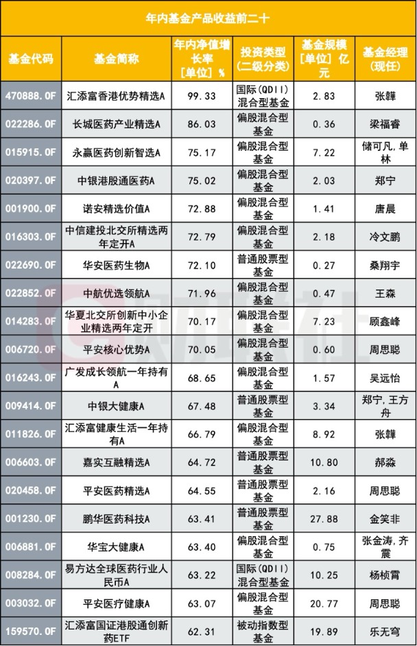 财联社6月12日讯(记者吴雨其)冰封两年的主动管理阿尔法能力,在一场结构分化行情中悄然解冻。 2025年的A股市场,一场静默的反转正在上演。在连续两年跑输被动指数基金的阴影下,主动权益基金以一场漂亮的翻身仗宣告回归。截至6月11日,代表主动权益基金的万得偏股混合型基金指数年内上涨5.84%,不仅将沪深300指数1.02%的跌幅甩在身后,也超越中证A500指数0.90%的跌幅。 一数据刺痛了市场的记忆神经——2023年至2024年间,主动权益基金曾深陷落后泥潭。2023年,万得偏股混合型基金指数累计下跌13.52个百分点,2024年则仅录得3.45%的涨幅,而同期沪深300指数涨跌幅分别为-11.38%、14.68%。 “当指数贝塔失效时,真正的阿尔法才开始浮出水面。”一位券商金融工程首席如此点评当前的分化格局。在存量博弈与行业轮动加速的市场中,那些敢于偏离主流配置、深耕产业研究的基金经理,终于等来证明自己的时刻。 主动管理反转,从持续跑输到明显领先 过去两年,主动权益基金的日子并不好过。2023年,万得偏股混合基金指数下跌13.52%,跑输沪深300指数2.14个百分点;2024年差距进一步扩大,主动基金3.45%的涨幅与沪深300指数14.68%的飙升相比,落后幅度超过10个百分点,中证A500指数同期涨幅也达到12.98%。 这种持续落后催生了市场对主动管理价值的普遍质疑。被动投资的拥趸们不断强调:在机构化程度提升、信息效率优化的市场中,主动基金已难创造超额收益。 然而2025年的开局改变了叙事逻辑。截至6月11日,万得偏股混合基金指数逆势上涨5.84%,而沪深300与中证A500指数则分别下跌1.02%和0.90%。这意味着主动基金不仅扭转了落后局面,更建立起近超6个百分点的相对优势。 驱动这一反转的核心力量,来自于主动基金在震荡市中的独特优势。去年四季度以来,当市场从“快牛”转入宽幅震荡,万得偏股混合基金指数跌1.27%,跑赢沪深300指数2.06%的跌幅。这一现象印证了某券商金融工程团队的发现:主动基金的超额弹性往往出现在牛市中后期,在下跌行情中近七成基金能跑赢市场。 具体到产品层面,分化更为明显。年内涨幅前二十的主动基金中,仅有一只指数产品入围。汇添富香港优势精选、长城医药产业精选、永赢医药创新智选等多只产品年内收益率超过70%,这些产品大多重仓创新药等成长赛道,且规模普遍低于10亿元,显示出“船小好调头”的灵活优势。 ![]() 与之形成鲜明对比的是,表现最好的指数基金——汇添富国证港股通创新药ETF年内涨幅为62.31%(截至6月11日),在全部基金排名中位列第20位。 市场风格的转变让投资者重新审视两类产品的配置价值。在深圳一家券商自营部门任职的投资主管坦言:“当指数单边上扬时,被动产品是理想工具;但当市场进入震荡分化阶段,主动管理者的选股能力将成为超额收益的关键来源。” QDII全球化布局斩获超额收益 与此同时,QDII产品也成为耀眼的弄潮儿。截至6月6日,汇添富香港优势精选以99.33%的年内收益率高居全市场榜首,近乎实现净值翻倍。易方达全球医药行业人民币份额紧随其后,涨幅突破60%。在涨幅榜前二十席位中,QDII基金占两席。 ![]() 这些产品的强势表现,与其全球化配置能力密切相关。以汇添富香港优势精选为例,基金经理张韡拥有康奈尔大学生物医学硕士背景,在2021年接管基金后持续重配港股及中概股中的创新药、科技龙头。该基金近三个月狂飙60.48%,近半年上涨82.57%,年内超越业绩比较基准的超额收益高达82.39个百分点。 更值得关注的是,领跑QDII基金几乎清一色聚焦医药赛道。除了上述提到的汇添富香港优势精选外,易方达全球医药行业人民币年内净值增长率达到63.22%,同样重仓医药股。此外,多只ETF型QDII年内净值增长也较为亮眼,如华泰柏瑞恒生创新药ETF、广发中证香港创新药ETF等等。 “医药行业的投资逻辑已从政策避险转向创新出海。”一位大型公募医药投研负责人指出,国内集采政策趋于温和,叠加FDA对中国创新药审批提速,双轮驱动下医药板块迎来价值重估。而主动型QDII基金凭借跨市场选股能力,更易捕捉全球产业链中的差异化机会。 长城基金梁福睿也表示,展望全年,今年很可能是创新药大年。一是有政策鼓励。过去几年,由于政策的负相关性,医药板块遭遇估值和业绩的“戴维斯双杀”,而如今这一情况已发生改变。二是今年很多创新药企业迎来收入和利润高增长,形成板块效应。三是无论是大单品的数据读出还是出海逻辑,不少Biotech(利用生物科技开发创新药、生物制品等的创新公司)或仿转创公司都有望迎来价值重估。 不过,这类高收益基金也引发市场争议。“押注单一赛道可能带来短期高收益,但也伴随较高风险。”一位研究员指出,“市场一旦波动,基金净值可能大幅下跌,还可能面临流动性不足问题。” 创新药ETF崛起,资金涌入下的结构性机会 尽管主动基金整体表现亮眼,被动投资领域也并非毫无看点。创新药ETF成为指数产品中的“突围者”,持续吸引资金涌入。国证港股通创新药指数年内上涨66.46%,汇添富国证港股通创新药ETF涨幅达62.31%,年内日均换手率高达24.50%,显示出极强的交易活跃度。 ![]() 资金流向数据更具说服力。以汇添富国证港股通创新药ETF为例,近5个交易日中均获亿级别的资金净流入,合计吸金8.79亿元,日均净流入达1.76亿元。今年以来的资金流向上看,汇添富国证港股通创新药ETF获净流入32