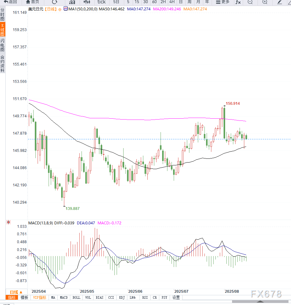 周五亚洲时段,日元在强劲经济数据支撑下走强,美元兑日元结束前一日的急涨并回落。 ![]() 尽管如此,市场对日本央行加息时机仍存分歧,主要受国内政治不确定性、消费恢复缓慢及美国关税风险影响。不过,与美联储可能年内多次降息的预期相比,日本央行的相对鹰派立场依然有利于低收益的日元吸引资金流入。 美国方面,美国劳工统计局数据显示,7月PPI同比上升3.3%,高于预期的2.5%,大幅快于前值2.4%。这一结果削弱了此前因CPI温和而增强的美联储激进降息预期,使美元短线急涨近200点,推动美元兑日元一度接近148.00关口。 分析人士指出,PPI的强劲表现暗示美国通胀可能重新抬头,但降息预期依然主导中期美元走势。 市场目前预计美联储在9月降息25个基点的概率约为90%,并有望在年底前至少降息两次,这对美元构成一定压力。 此外,美国总统特朗普与俄罗斯总统普京将在阿拉斯加会晤,讨论结束乌克兰冲突的方案,相关消息料将影响避险情绪,从而波动日元走势。 美国即将公布的零售销售、纽约联储制造业指数、密歇根大学消费者信心与通胀预期数据,以及美联储官员讲话,均可能为汇市带来短期波动。 日线图形上来看,美元兑日元在146.20反弹后,于148.00关口(对应自151.00高点回落的38.2%斐波那契回撤位)遇阻,该位成为短期多空分水岭。 若有效突破148.00,将有望上探148.60(50%回撤位),进一步挑战149.00整数关口;反之,若跌破147.00支撑,将重新测试146.20低点,一旦失守146.00,则下行目标或延伸至145.30甚至145.00心理关口。 ![]() 当前日元走势在基本面和技术面上均处于多空拉锯状态。强劲的日本经济数据与日本央行鹰派预期支撑日元,但美国通胀意外回升与短期美元反弹形成对冲,关键在于148.00阻力能否突破,若失败,区间震荡格局或将延续至下周。 |