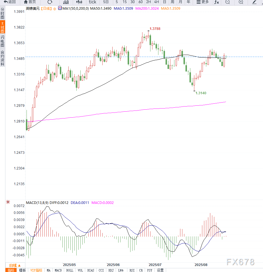 英镑兑美元在周一亚洲交易时段承压下滑。该货币对在1.3495附近遇到卖压,美元在短期内恢复部分需求。 ![]() 市场目前预计,下一次25个基点降息要到2026年3月才可能实现。 在缺乏英国高等级数据的情况下,汇价短期波动主要取决于美元表现。本周市场还将关注美国新屋销售和芝加哥联储全国活动指数,以捕捉美元方向。 从日线图来看,英镑兑美元在1.3520附近遇阻后回落。短期支撑位在1.3460,若跌破可能进一步走低至1.3400关口。上方阻力位在1.3550—1.3580区间,若突破该区域,将重新打开上涨空间,目标指向1.3650。 整体技术形态显示该货币对处于震荡整理格局,短线偏弱运行。 ![]() 目前英镑兑美元走势受到美联储与英国央行政策分化的影响。美联储释放降息信号,中长期利好英镑,但美元短期因避险与数据驱动表现坚挺。 与此同时,英国通胀超预期强化了市场对英国央行暂缓宽松的预期,为英镑提供一定支撑。整体来看,汇价在1.34—1.36区间震荡概率较大,方向仍需等待美国核心数据与美联储9月会议的确认。 |