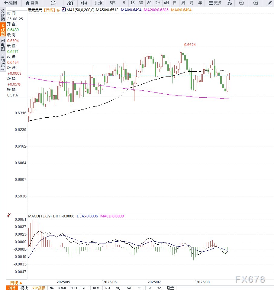 周一亚洲交易时段,澳元兑美元(AUD/USD)交投于0.6480附近,在上周录得超过1%涨幅后小幅企稳。澳元走势的支撑主要来自于美元走软,以及美联储政策前景的转变。 ![]() 服务业PMI虽小幅回落至55.4,但仍高于市场预期的54.2。强劲的PMI数据与劳动力市场的疲软形成对比,加大了美联储政策权衡的难度。 在澳洲方面,市场预期澳洲央行可能在11月恢复宽松,并采取50个基点的降息,反映出对经济增长放缓的担忧。 部分美联储官员表态显示出灵活性。芝加哥联储主席古尔斯比称:“9月会议仍是开放的,经济信号存在矛盾。”;波士顿联储主席柯林斯则表示:“9月降息存在可能,关税压力和劳动力市场疲软值得关注。” 从日线图形式等来看,澳元兑美元正在尝试突破下降通道上沿。上方阻力位:0.6491(50日EMA)与0.6500通道上沿构成关键阻力区,若突破将打开上行空间,目标指向0.6568(8月14日高点)及0.6625(7月24日九个月高点)。 下方支撑位:初步支撑在0.6477(9日EMA),若跌破将可能下探0.6414(两个月低点)及0.6372(三个月低点)。 ![]() 整体来看,澳元兑美元的走势主要受美联储降息预期与澳洲央行未来降息幅度的博弈影响。短期内,若澳元成功突破0.6500,可能触发技术性反弹; 但若美国GDP与PCE数据强于预期,美元或重新获得动能。关注本周美国核心PCE数据与澳洲央行官员的讲话,这将决定澳元能否走出新的上行趋势。 |