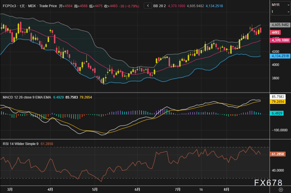 周一(8月25日),马来西亚衍生品交易所(Bursa Malaysia Derivatives Exchange)棕榈油主力合约FCPOc3收报4493林吉特/吨,日内下跌36林吉特,跌幅0.79%。尽管前一交易日曾录得1.55%的涨幅,但市场在高位显现疲态,投资者对价格抑制需求的担忧逐渐升温。 ![]() 从技术指标看,当前棕榈油合约处于多空博弈的关键位置。布林带(20,2)中轨位于4370林吉特,上轨触及4606林吉特,下轨支撑位于4134林吉特。MACD(12,26,9)虽保持金叉状态,但快慢线差值收窄至6.49,红柱收缩暗示动能减弱。RSI(14)读数61.29,暂未进入超买区间,但已脱离强势区域。 日内价格回调主要源于获利了结与需求端疑虑。吉隆坡交易公司Iceberg X Sdn Bhd的自营交易员David Ng指出:“棕榈油近期涨幅可能抑制未来需求,且豆油与棕榈油价差收窄削弱了后者的竞争优势。”他同时提示,短期支撑位看4450林吉特,阻力位关注4600林吉特。 基本面与消息面新动态 出口数据分化 船运调查机构数据显示,8月1日至25日马来西亚棕榈油产品出口量环比增长10.9%至16.4%。尽管增幅显著,但市场对后续订单持续性存疑。高价环境下,印度和中国采购节奏可能放缓,尤其与南美豆油出口竞争加剧。 生物柴油需求支撑 原油价格走强为棕榈油生物燃料需求提供托底作用。近期地缘政治事件推升油价,市场担忧俄罗斯供应受美国制裁及乌克兰袭击能源基础设施影响。棕榈油作为生物柴油原料的替代吸引力随之提升。 汇率与政策扰动 林吉特兑美元汇率当日升值0.47%,令以美元计价的棕榈油采购成本增加,间接压制进口国需求。另一方面,印尼针对欧盟生物柴油反补贴税的WTO胜诉可能中长期利好全球棕榈油贸易格局,但短期实际影响有限。 机构观点:分歧与共识 Iceberg X Sdn Bhd交易员David Ng 明确表示:“豆油与棕榈油价差收窄正削弱棕榈油的性价比优势。”其认为当前市场需突破4600林吉特阻力才能打开上行空间,否则可能回探4450林吉特支撑。 知名机构调查数据显示 8月出口增长虽乐观,但部分分析师提示需关注9月后到港量是否匹配实际消费。此外,中国国内油脂库存变化及南美新季大豆播种进度将成为未来跨品种价差的关键变量。 未来展望:谨慎中的机会 尽管棕榈油短期面临需求端压力,但生物柴油政策与原油价格联动仍提供底部支撑。若后续出口数据持续强劲或豆油价格再度走强,棕榈油有望重拾升势。然而,若林吉特维持强势或全球植物油供应超预期增加,价格调整周期可能延长。 市场需密切关注9月初的MPOB月度报告及印尼出口税费政策调整。中长期看,供需平衡表的修复仍需消费端实际增长验证,而非仅靠预期驱动。 ![]() |