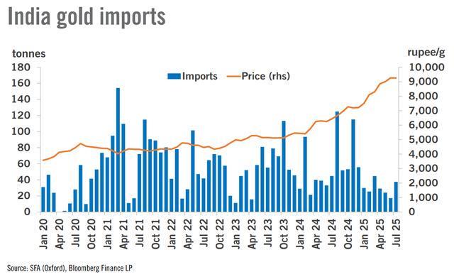 行业巨头贺利氏(Heraeus)的贵金属分析师表示,尽管利率乐观情绪让黄金重新扬帆起航,但美元疲软和政治风险可能是未来更大的驱动力,尽管最近银价上涨至每盎司39美元,但白银可能在关键领域失去动力。 在最新的贵金属更新中,分析师写道,印度7月份的黄金进口量增至37.5吨左右,价值近40亿美元。他们表示:“由于金价高企抑制了珠宝需求,今年上半年的进口量相对较低,为170吨。”。“然而,随着婚礼季的临近,珠宝制造商似乎一直在囤积。” 分析师还指出,美联储上次会议的纪要显示,尽管两名持不同意见者投票决定降息,但大多数与会者更关心通货膨胀而非就业市场。他们警告称:“鉴于通胀率仍明显高于2%,9月份会议降息的可能性可能低于市场预测。”。 他们补充道:“避险需求只是黄金吸引力的一个因素,随着美联储面临美国政府官员和特朗普总统降息的压力,对央行的干预和政策失误的可能性可能是一个更大的问题,这将对利率、美元(下跌)和黄金(上涨)产生影响。”。 周五上午,美联储主席鲍威尔在杰克逊霍尔发表讲话后,金价飙升至3370美元的高点,在总体鸽派言论之后,黄金价格保持在较高区间。 现货黄金继续在本周初的新高区间内反弹,上一交易日为每盎司3370.46美元,盘中下跌0.02%。 谈到白银,贺利氏表示,中国政府最近政策的变化可能会抑制太阳能项目对白银的需求。 他们写道:“中国太阳能行业在第三季度面临逆风,因为开发商在等待即将到来的拍卖指导方针的同时限制了项目。”。“政府已强制所有太阳能项目必须参与电力市场,结束了以当地煤炭基准电价直接向电网出售电力的做法。开发商可能会推迟投资决策,直到中国各省能够实施将在拍卖中出售的差价合约(CfD)。因此,预计第三季度太阳能新增容量将大幅放缓,可能降至2024年第三季度安装量的一半。” 在期货市场,分析师指出,投机交易员已经开始减少白银敞口,在最近上涨后获利回吐。 他们表示:“自7月价格达到峰值以来,投机性净多头头寸减少了16352份合约(27%),包括上周的6390份,使非商业净多头头寸总额达到44268份合约(221 moz),为四个月来的最低点。”。“在即将召开的美联储研讨会和9月份的利率决定之前,投机者可能正在重新评估风险。” 鲍威尔演讲后,白银价格也出现反弹,在周一的交易中,这种灰色金属已经两次测试了每盎司39美元的阻力位。 现时,现货银的最后交易价格为每盎司38.745美元,在日线图上下跌了0.31%。 |