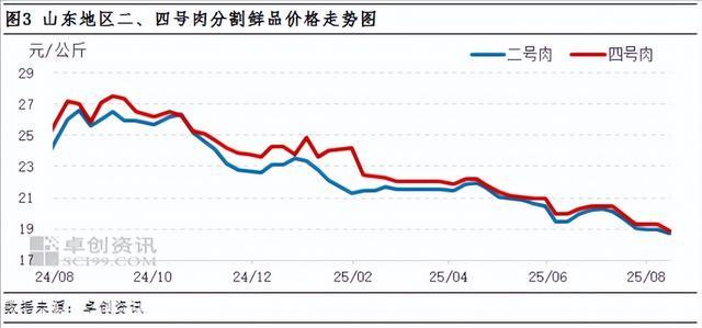 一、猪肉产业链价格、利润传导图 二、本周市场回顾分析 周内白条猪肉价格较上周下跌。养殖端积极出栏,猪肉供应较为充裕,且需求好转程度有限,猪肉成交情况一般,价格微跌。 从周均价来看,本周国内猪肉产业链重点商品白条猪肉价格较上周下跌,产业链上游养殖端盈利减少,屠宰盈利水平上升,但行业整体盈利状况欠佳。 三、猪肉市场分析 1. 本周白条猪肉价格回顾 本周卓创资讯监测北方重点市场白条猪肉均价17.37元/公斤,环比下跌1.61%。南方重点市场白条猪肉均价18.10元/公斤,环比下跌0.64%。 供应及成本方面,周内成本端价格跌后微涨,均价环比下跌,屠宰量继续微增,白条猪肉供应充足;需求端来看,开学备货暂未启动,周内开学宴对需求有一定的利多影响,但供应增量大于需求增量,且成本端重心下移,猪肉价格继续小幅下跌。 2. 本周山东地区重点鲜品分割品回顾 本周山东地区国产鲜品二、四号肉价格环比下跌。周内二号肉交易均价18.75元/公斤,环比下跌0.25元/公斤,跌幅1.32%;四号肉交易均价18.90元/公斤,环比下跌0.40元/公斤,跌幅2.07%。 本周鲜品二、四号肉周内价格稳定为主,周初价格下跌。周初养殖端出栏量正常,号肉供应量充足,但下游走货较慢,被迫降价销售。随着养殖端惜售情绪渐起,带动屠宰企业存挺价意愿,但订单无明显变化,因此价格上涨乏力,多稳价销售。 3. 本周进口猪肉分割品市场分析 本周国内进口猪头、猪后腿骨、猪前肘周均价分别为11737元/吨、4450元/吨、17310元/吨,环比分别下跌2.87%、6.32%、0.61%;二号肉、四号肉价格分别为20597元/吨、20907元/吨,环比分别下跌4.28%、4.17%。 本周进口猪肉产品价格跌幅扩大。周内国产冻品价格下降,同时鲜冻价差较小,号肉等产品甚至出现“倒挂”现象。下游经销商及食品厂等群体拿货积极性较差,进口冻品成交寡淡,进口商存一定库存压力而降价走量,导致周内进口产品跌幅扩大。 4. 相关产品分析 白羽肉鸡产品综合售价8.74元/公斤,环比跌幅0.23%,同比跌幅5.82%。其中板冻大胸周度均价7.32元/公斤,环比跌幅1.74%,同比跌幅12.65%;大规格琵琶腿周度均价9.80元/公斤,环比跌幅2.20%,同比跌幅0.71%。本周产品市场需求疲软,经销商采购心态谨慎。产品库存提升,厂家库存整体偏高运行,且经销商及食品加工企业整体库存中高位运行。综上所述,供需面双重利空市场。产品周度均价环比走低。产品周度均价环比走低。肉鸡产品价格下滑对猪肉市场存在微幅利空影响。 5. 下周市场展望 预计未来一周白条猪肉价格呈现稳后小涨的态势,周价格运行区间或在17.50-17.80元/公斤。 供应:下周前期,上游养殖端积极出栏,原料供应依旧较为充裕;周后期随着月底临近,供应或有降低,屠宰企业收购难度增加,猪肉供应随之减少。总体看,下周白条猪肉供应环比变化不大。 需求:受开学季影响,终端需求或略有好转,但幅度十分有限,预计下周白条猪肉需求或略增。 预测观点:综合来看,预计未来一周白条猪肉均价或环比微涨,周均价参考17.64元/公斤。 未来第二、三周,月初规模养殖场出栏量有限,后期随着陆续恢复出栏节奏,生猪及猪肉供应或逐渐增多。叠加随着开学季备货告一段落,需求或有回落,总体看,预计未来第二、第三周白条猪肉价格或高位回调。 |