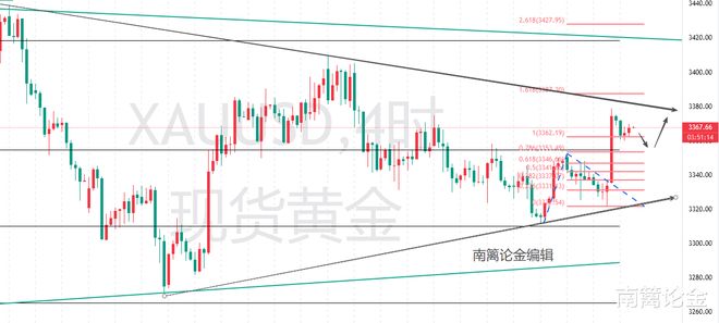 短期四小时,没有底背离等结构的基础上,行情发生了向上。其实也可以当做四小时结构的头肩底,但这个节奏有点太勉强了。所以换个方法,以斐波那契的扩展线来做连接,始发位3311,一倍量是已经走上去了,视3361的企稳程度,再往下方去走呢,它的第一段上涨支撑就在46~53之间,与日线中轨几乎形成共振,作为日内初步支撑尝试。 当然,黄金处于多空皆可的环境,顺势为主,这周五大概率是不错的拐点。然后下周,就又非农了,时间过得真快呐。 免责声明:文章不作为建议仅供参考,具体交易思路将在实盘给出。 本文只代表个人观点,仅供参考,投资有风险,入市需谨慎! |