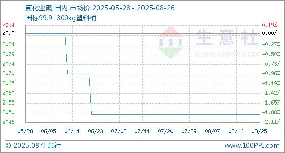 8月26日,生意社氯化亚砜基准价为2050.00元/吨,与本月初持平。