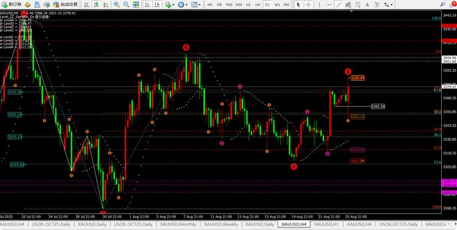 昨日我们给出的最佳做多点是3350-52可惜昨日没有到达,而今日早间开盘后探底3351后快速拉升至目前的3382一线,没赶上趟就比较可惜了。今日价格将冲击3392-97了以及试探前期的高点3405-08一线。 昨日开盘价格从3371.88附近震荡下跌3359.6一线反弹3368-70附近,之后价格维持在3362-3372区间震荡,在美盘价格小幅冲高拉升3376一线回撤3364附近。早间开盘价格直接从3365附近下跌在3351附近形成双底快速拉升。 因为3350-52早间已经下探过一次,所以该点做多的机会几乎没有了;那么3362-64以及3368-72就是今日做多的时机。从目前的拉升情况看:短期在3362-64做多的机会也比较小,所以只剩下3368-72一线了。