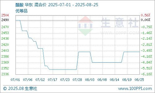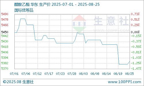 据生意社商品行情分析系统,截止25日,醋酸乙酯价格在5386.67元/吨,与8月18日价格5423.33元/吨相比下调0.68%,较月初跌幅1.10%。供方库存小幅增加,下游需求持续偏弱,市场成交一般,醋酸乙酯行情延续弱势运行。