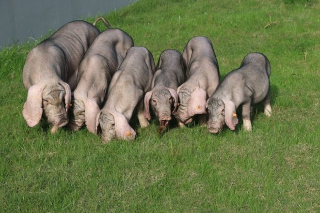 梅山后备种猪 “嘉定梅山猪”是我国优良地方品种太湖猪的一个主要品系,以高繁殖力和肉质鲜美而著称于世,作为优质的杂交母本,广为推广应用,先后被法国、英国、日本等国家引进,国内、国际享有很高的知名度。上海市嘉定区动物疫病预防控制中心-国家梅山猪保种场自上世纪70年代以来通过提纯复壮,保持了梅山猪种源的优良特性。中心2008年被确定为国家级梅山猪资源保护场,2013年“嘉定梅山猪”获得农业部农产品地理标志认证,2022年更名为国家梅山猪保种场,地理坐标为东经121°14′33″~121°33′18″,北纬31°31′36″~31°45′61″。经过大量的杂交试验,筛选出的杜梅黑猪生长速度较快,易于规模化饲养。肉色鲜红,肌肉大理石纹较好,肌间脂肪的数量和分布适度,氨基酸含量高,具有细嫩多汁,肉香浓郁的良好口感,深受嘉定乃至周边地区百姓的喜爱。