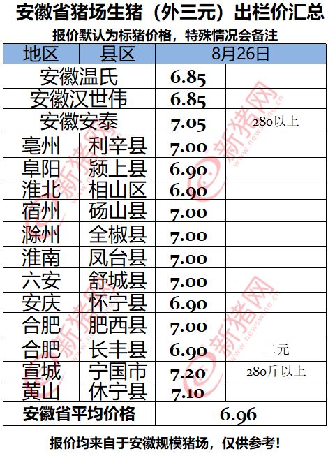 安徽6.8-7.0跌 浙江6.9-7.2平 上海6.9-7.3平 山东6.9-7.0平 江苏6.9-7.0平 福建7.1-7.3平 江西6.8-7.0跌 湖北6.8-7.0平 河南6.7-6.9跌 湖南6.8-7.0平 广东7.4-7.7跌 广西6.7-7.0跌 海南7.9-8.1平 北京6.7-7.0平 天津6.7-7.0平 山西6.6-6.8跌 河北6.8-7.0平 吉林6.6-6.8跌 辽宁6.6-6.9跌 陕西6.6-6.8跌 甘肃6.6-7.0跌 重庆6.7-6.9平 四川6.7-6.9跌 云南6.8-7.0平 贵州6.8-7.0跌 新疆6.2-6.4跌 黑龙江6.5-6.7跌 全国猪价预计稳中偏弱。
