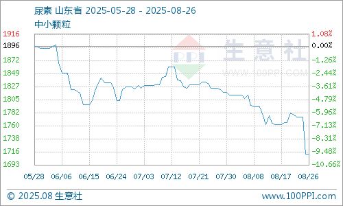 回顾本月走势,市场经历了一轮由紧供给驱动的反弹。8月上旬,全国均价(除新疆外)维持在5300元/吨附近。自11日起,由于多家企业集中停车检修,行业开工率骤降至44.32%的近三年最低水平,日产量大幅减少超30%,供应紧张推动局部区域价格上调,带动全国均价反弹至5600元/吨,阶段涨幅1.41%。然而,市场支撑因素近期有所减弱。 成本端: 原料尿素价格截止8月26日,生意社尿素基准价为1712.50元/吨,与本月初(1812.50元/吨)相比,下降了5.52%。达到1782元/吨后转入下行,较上旬高点下降1.73%,削弱了对三聚氰胺的成本支撑。另一方面,尽管下游板材需求略有回暖,但房地产行业低迷仍制约整体需求复苏,加之国际关税政策调整影响出口,需求端未出现强劲增长。此外,临近下旬部分检修装置计划重启,市场预期供应将逐步回升,对价格构成压力。