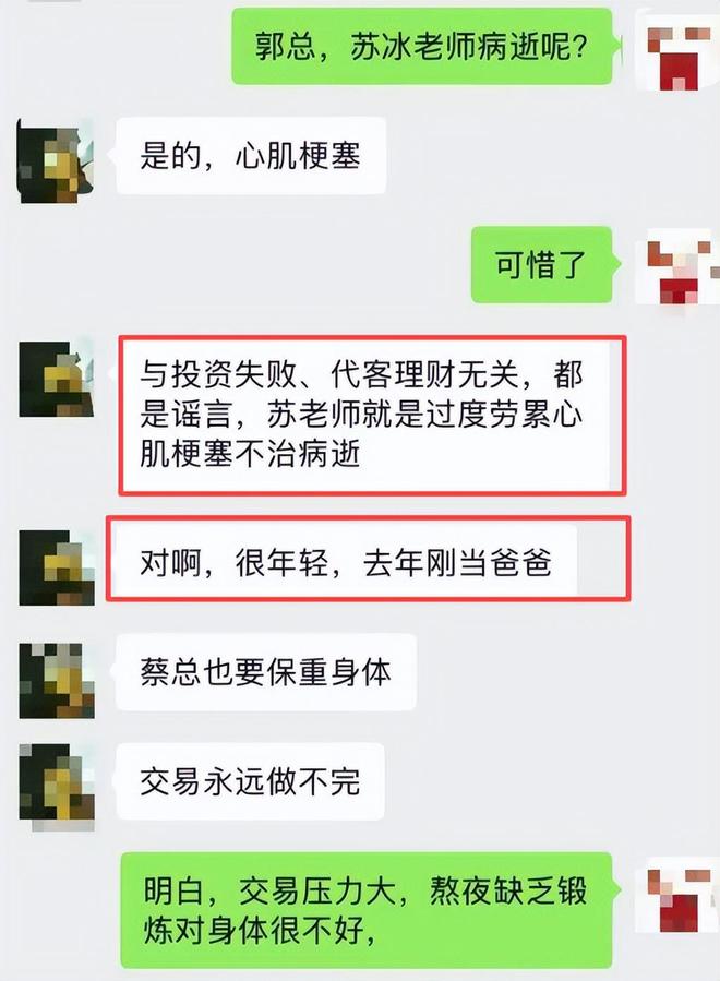 有人找知情人了解,对方否定了网上的各种说法。 但是也透露了苏冰的死因其实是因为心肌梗塞。 之所以会突发心梗,是因为苏冰的过度劳累。