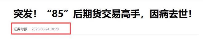 参考资料 证券时报2025-08-24《突发!“85”后期货交易高手,因病去世!》