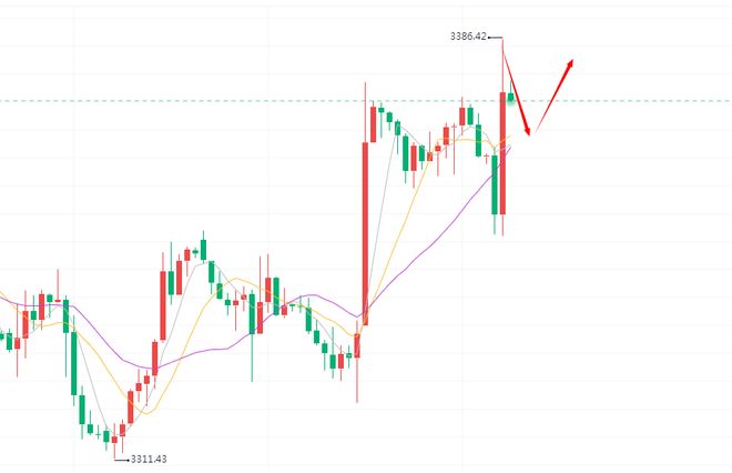 昨天黄金走了一个先回踩后拉升的行情走势,昨天黄金开盘在3371.1,早上黄金在3372受阻出现一波回落!欧美盘黄金开启震荡上涨走势,美盘上涨触及到了3376.2,尾盘黄金有所回落,最终收盘在3365附近!日线以一根下影线稍长于上影线的纺锤形态收尾