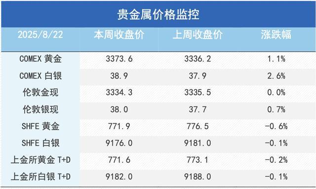 摘要 上周宏观层面的波动主要来自周五晚间鲍威尔在JH会议上的发言,从他的讲话内容来看,基本可以确定联储接下来一段时间的工作重心会更加倾向于维持劳动力市场景气,而并非是通胀。即便通胀可能会有所抬头,但是联储已经认定那是关税对通胀的一次性冲击。所以在这种背景下,货币政策的环境对金、铜而言可能会更加友好。 芝商所产品周报订阅中心 核心观点 1、上周金铜走强 贵金属方面,上周COMEX黄金上涨1.05%,白银上涨2.26%;沪金2510合约下跌0.31%,沪银2510合约下跌0.13%。主要工业金属价格中,COMEX铜、沪铜分别变动-0.62%、-0.47%。 2、预防式降息推升铜价中枢 上周宏观层面的波动主要来自周五晚间鲍威尔在JH会议上的发言,他传递的鸽派信号超出大部分市场参与者的预期,对利率敏感的商品形成了较大的提振。从他的讲话内容来看,基本可以确定联储接下来一段时间的工作重心会更加倾向于维持劳动力市场景气,而并非是通胀。即便通胀可能会有所抬头,但是联储已经认定那是关税对通胀的一次性冲击。所以在这种背景下,货币政策的环境对铜而言可能会更加友好。 3、鸽派转向推动金价反弹 上周,俄乌冲突的缓和及美国PMI远超市场预期使得金价有所承压,而周五鲍威尔表示劳动力市场的下行风险仍在上升、关税对通胀的影响相对短暂、美联储政策框架调整等,均显示其鸽派的转向,联储9月降息预期快速回升,美元指数与美债收益率随之回落,贵金属价格得以支撑。金价的中长期牛市在美国主权信用风险仍存的预期下仍未改变,但短期来看仍需关注地缘冲突缓和及降息预期反复的风险,预计金价仍将处于区间内运行。 基本金属市场复盘 (一)COMEX/沪铜市场观察 上周COMEX铜价维持震荡格局,没有出现明显的趋势迹象。上周宏观层面的波动主要来自周五晚间鲍威尔在JH会议上的发言,他传递的鸽派信号超出大部分市场参与者的预期,对利率敏感的商品形成了较大的提振。从他的讲话内容来看,基本可以确定联储接下来一段时间的工作重心会更加倾向于维持劳动力市场景气,而并非是通胀。即便通胀可能会有所抬头,但是联储已经认定那是关税对通胀的一次性冲击。所以在这种背景下,货币政策的环境对铜而言可能会更加友好。 上周SHFE铜价整体围绕78500元一线窄幅震荡运行,周五在全市场RISK ON的带动下重返79000元上方运行。目前我们还是相对看好铜价,一方面七八月份的淡季也并没有让铜出现明显的累库,而眼下即将进入九月消费旺季,季节性改善会对铜的去库形成支撑;另一方面,中美宏观都有转暖的信号,国内延续反内卷治理通缩的思路,美国预防式降息的路径在鲍威尔JH发言后已经打开,宏观可能会开始交易增长动能的回归,对铜价而言是相对利好。 期限结构方面,COMEX铜价格曲线角此前向上位移,价格曲线仍然维持contango结构。目前COMEX铜库存的交仓仍在继续,库存已经突破27万吨,但交仓量有所降低。从3月至今,COMEX铜库存累积增长17万吨,与美国进口铜数据对比,预计还有大量的铜没有显性化,后续可能需要关注北美其它仓库是否出现交仓的行为。 上周SHFE铜价格曲线较此前向上位移,价格曲线总体仍然呈现小幅back结构。从短期来看,我们并不认为沪铜有很大的累库压力,因此逢低做borrow仍然可行,但是空间有限。如果看三个月左右,需要考虑后续精炼铜进口的环比显著增加,以及9-10月冶炼厂检修的具体影响量级。单从供应的角度而言,逢低做borrow相对安全,但是看不到很大的空间,除非需求提供预期外的弹性。 持仓方面,从CFTC持仓来看,上周非商业空头占比重新回落,非商业多头占比有所抬升,这也与短期铜价的波动较为吻合。可能在一段时间内多空仍将维持现有格局,但由于两者目前总持仓量均较低,因此后续一旦行情爆发,预计将较为猛烈。 图1:CFTC基金净持仓 数据来源:Wind (二)产业聚焦 上周铜精矿TC周指数为-38.61美元/干吨,较上周跌0.68元/干吨。铜精矿现货市场TC小幅下调,现货市场分歧仍存,整体成交依旧偏淡,氛围延续谨慎态势。干净铜精矿现货市场TC主要在-30高位到-40低位区间波动。干净铜精矿现货市场TC近期波动区间扩大,主流围绕-38至-44区间波动。BHP 10月船期Qp:M+3的招标结果显示,炼厂为-44美元/干吨,贸易商为-85美元/干吨,较前期小幅下移;同时,贸易商对四季度货物报-40美元中低位,市场参与者认为,招标结果落地后短期价格锚定明确,但受供需格局及交易情绪影响,回暖迹象暂停。 图2:铜精矿加工费 数据来源:SMM 现货方面,上周现货升水大部分时间表现走跌,重心有所回落。主因随着进口铜到货流入增多,部分持货商低价出货情绪显现,加之下游企业接货需求难有明显提振,现货升水因此承压;同时由于国产货源到货同样有所增量,主次平水品牌价差高位收敛至50元/吨附近。本周来看,由于月底进口铜到货仍有增量,市场流通货源供应压力或进一步增加。同时,考虑到临近月底,下游企业受制于资金压力等因素,采购补库意愿预计相对有限,叠加部分贸易企业回笼资金需求,周内低价出货情绪仍存,现货升水仍有下跌空间,整体或运行于升0~升200元/吨。 图3:沪铜升贴水 数据来源:SMM 国内市场电解铜现货库存12.97万吨,较14日降0.27万吨,较18日降1.45万吨;本周上海市场库存环比上周下降,周内先增后降,随着周末进口到货流入较多,社库周初累库明显,但由于个别仓库