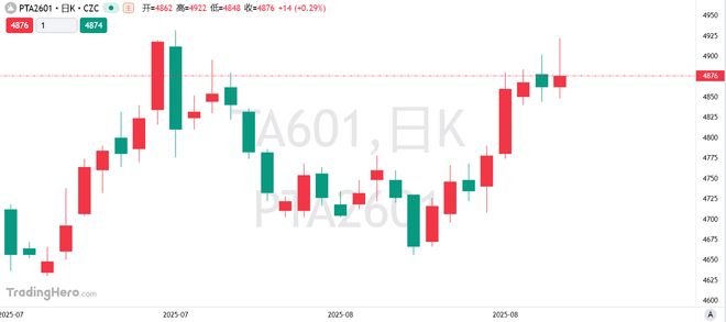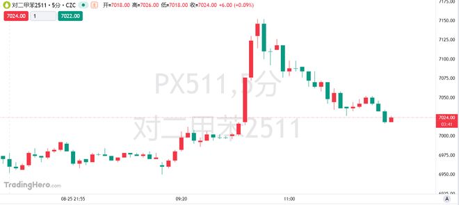 对二甲苯(PX )、PTA本轮涨势是何时启动的? 对二甲苯(PX )、PTA本轮涨势主要是在8月15日开始启动,回顾上周至今的行情,可以发现(以PX为例): 8月15日,对二甲苯(PX )主力合约开盘价6618元/吨,收盘价6688元/吨,日内上涨1.12%。 8月18日,对二甲苯(PX ) 主力合约开盘价6690元/吨,收盘价6760元/吨,涨1.08%。 8月19日,对二甲苯(PX ) 主力合约开盘价6770元/吨,收盘价6774元/吨,涨0.21%。 8月20日,对二甲苯(PX ) 主力合约开盘价6774元/吨,收盘价6844元/吨,涨1.03%。 8月21日,对二甲苯(PX ) 主力合约开盘价6848元/吨,收盘价6958元/吨,涨1.67%。 8月22日,对二甲苯(PX ) 主力合约开盘价6946元/吨,收盘价6966元/吨,涨0.11%。 8月25日,对二甲苯(PX ) 主力合约开盘价6964元/吨,收盘价6970元/吨,涨0.06%。 8月26日,对二甲苯(PX ) 主力合约盘中一度大幅拉升,最终收涨0.17%,报6994元/吨,较8月15日最低价6606元/吨上涨近6%,连续八个交易日上涨。 今日盘中价格为何大涨? 市场分析认为,盘面走强可能受市场传闻某石化企业PX10月检修的消息影响,叠加库存持续去库、下游装置检修结束,市场情绪环比修复。 尽管今日盘中对二甲苯(PX )价格明显拉涨,但市场仍然认为上方反弹空间有限,受油价与基本面预期约束,预计盘面依旧以宽幅震荡为主。