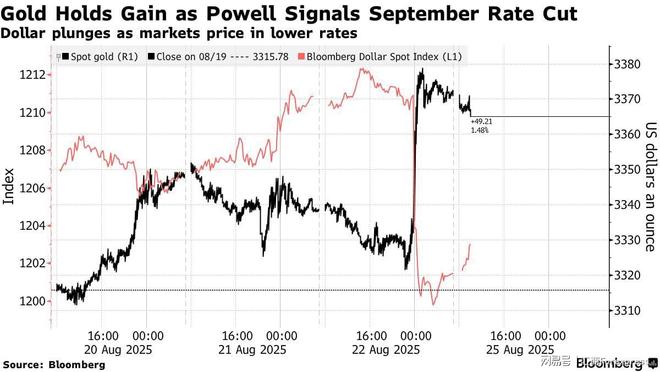 ATFX汇评:美联储主席鲍威尔上周五在杰克逊霍尔经济研讨会上发表演讲,指出劳动力市场风险上升——尽管通胀担忧依然存在。对政策敏感的两年期美国国债收益率暴跌,而衡量美元强弱的指标在鲍威尔讲话后下跌,美股市场和黄金一度共同狂欢。当天道琼斯指数创下了今年以来的首个纪录新高,黄金录得三周来的最大涨幅,现货白银单日大涨1.72%。