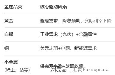 鲍威尔指出,经济形势给美联储官员带来了“挑战”,并强调,特朗普的关税是否会以更持久的方式重新引发通胀仍存在疑问,他还称劳动力市场的现状“令人担忧”。因此,整体的讲话被市场视为鸽派,并进一步强化市场对于9月降息和年底前累计降息50个基点的押注。不过由于美国通胀率仍高于目标水平,且就业市场出现疲软迹象,9月以后的前景仍存在高度不确定性。 今年以来,金价已上涨逾四分之一,其中大部分涨幅出现在前四个月,这得益于地缘政治和贸易紧张局势加剧刺激了避险需求,以及各国央行的购买。包括瑞银集团财富管理部门在内的一些市场观察人士预计,黄金还有进一步上涨的空间。不过,根据商品期货交易委员会的最新数据,对冲基金已将其黄金看涨头寸削减至六周低点,显示部分看涨情绪消退,暂时限制向3400美元关口的挑战。 今年走势强劲的白银前景维持乐观,同时受益于降息带来的金融属性和光伏等工业需求的爆发性增长。2025年其工业需求占比或突破55%。若9月降息落地,白银可能挑战40美元/盎司,长期来看,供需格局支撑价格中枢上移。 除了贵金属价格抽高外,在鲍威尔讲话后的工业金属和铁矿石价格上涨。铜价曾连续第三个交易日上涨,伦敦金属交易所(LME)三个月期铜一度触及8月14日以来最高。今年,由于担心全球最大金属消费国的需求减弱,主要工业金属价格受到制约。 铜价反弹的持续性存在不确定性,更多取决于后续实际需求的表现,下半年市场趋于平衡,短期现货铜价可能因降息预期摇摆而振幅扩大。而部分小金属则预计因供需紧平衡和战略价值,其反弹持续性可能较强。