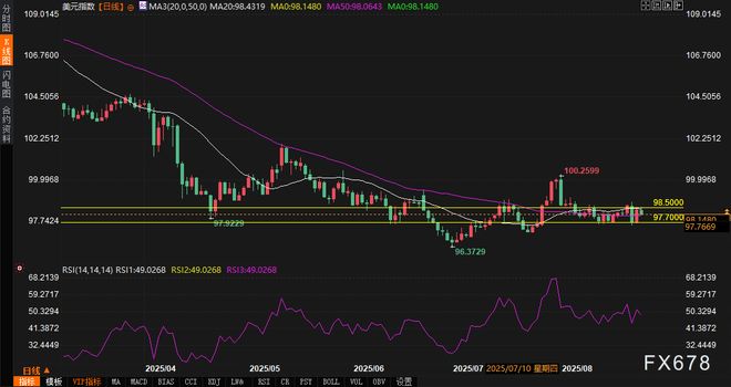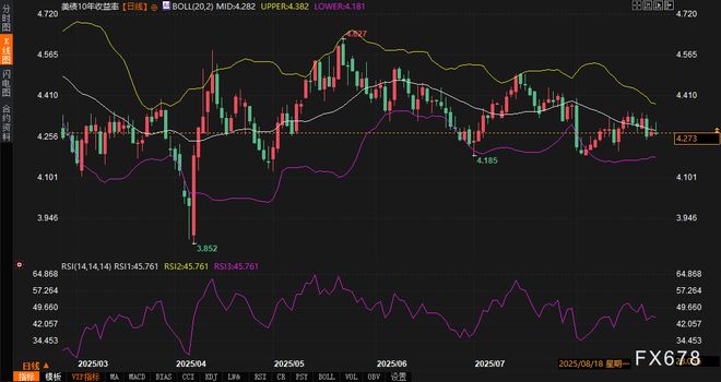 基本面分析:美联储政策与市场情绪交织 近期,市场对美联储货币政策的关注度持续升温。美联储主席鲍威尔在上周杰克逊霍尔会议上的讲话释放鸽派信号,市场普遍预期9月降息25个基点的概率已升至87%。此预期推动了美元指数的回落,同时提振了黄金价格。然而,美联储内部对降息节奏的看法存在分歧。达拉斯联储主席洛根指出,第三季度末可能出现资金市场压力,但美联储有工具应对短期波动,同时暗示降息可能延续至9月之后。这表明,尽管降息预期为黄金提供了支撑,但市场对美联储政策的解读仍存在不确定性。 本周五即将公布的PCE价格指数数据将成为市场焦点。知名机构预计,7月PCE headline通胀率将从6月的0.3%放缓至0.2%,核心通胀率维持在0.3%。若数据符合或低于预期,将进一步强化降息预期,对黄金构成利好;反之,若通胀数据超预期,可能导致美元反弹,压制金价。 美联储独立性争议与避险情绪 近期,特朗普有关撤换美联储理事库克的言论引发市场震动,投资者对美联储独立性的担忧加剧。库克在周二的新闻发布会上明确表示将继续履行职责,并强调总统无权直接撤换美联储理事,这一表态部分缓解了市场对美联储政策连续性的担忧,美元因此小幅回升。然而,特朗普对美联储施加压力的举动仍令市场对货币政策前景感到不安,推动部分资金流入黄金等避险资产。此外,俄乌局势的持续紧张以及法国政府潜在的不稳定因素进一步加剧了全球市场的避险情绪,支撑了黄金价格。 美债收益率与美元的相互作用 10年期美债收益率报4.275%,接近布林带中轨4.282%下方,显示趋势偏弱。2年期美债收益率报3.702%,反映市场对长期经济前景的分歧。美债收益率的低位运行削弱了美元的吸引力,同时为黄金提供了有利环境。美元指数在97.70-98.50区间内波动,短期受20日均线(98.4326)压制,50日均线(98.0645)构成阻力。有交易者指出,美联储降息预期和特朗普的关税言论可能继续削弱美元,增强黄金的吸引力。然而,美元短期的回升动能可能对金价构成一定阻力。