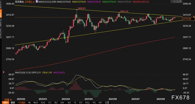 汇通财经讯——周二(8月26日),现货黄金市场在高位盘整中寻求方向。市场情绪受到近期美联储政策预期和地缘政治因素的影响,黄金作为避险资产的吸引力有所增强,但短线波动仍受美元走势和美债收益率的牵制。本文将结合基本面与技术面,深入剖析现货黄金的当前动态,并展望未来趋势。 汇通财经APP讯——周二(8月26日),现货黄金价格在3378.86美元/盎司附近窄幅震荡,日内涨幅0.39%,显示市场在高位盘整中寻求方向。美元指数(DXY)报98.1829,日内下跌0.25%,继续在97.70-98.50区间内运行,动能不足。10年期美债收益率回落至4.275%,接近月内低点4.186%,对黄金等非收益资产形成支撑。市场情绪受到近期美联储政策预期和地缘政治因素的影响,黄金作为避险资产的吸引力有所增强,但短线波动仍受美元走势和美债收益率的牵制。本文将结合基本面与技术面,深入剖析现货黄金的当前动态,并展望未来趋势。