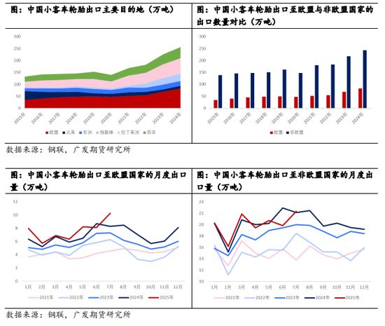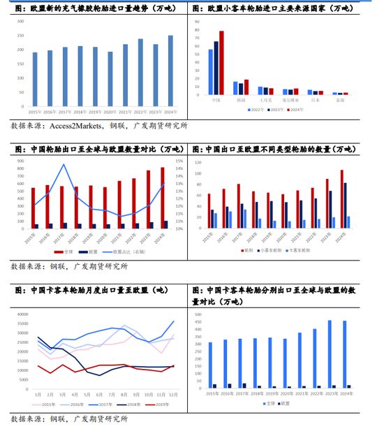 来源:市场资讯 来源:广发期货研究 证监许可【2011】1292号 张晓珍 Z0003135 2025年8月26日 星期二 摘要: 近年来,中国轮胎在欧洲市场发展迅猛,且中国在欧盟的小客车轮胎进口市场处于绝对的领先地位,如此显著的增长趋势,引发了欧盟方面的高度关注。2025年5月21日,欧盟委员会启动对原产于中国的新乘用车和轻型卡车充气橡胶轮胎的反倾销调查,以回应欧盟轮胎产业关于中国倾销行为损害其利益的投诉。此次调查,正值全球贸易环境持续收紧的关键节点,将对中国轮胎出口产生进一步的影响。本文旨在梳理欧盟对华轮胎反倾销的动态、回顾2018年欧盟对华卡客车轮胎实施“双反”措施,以及分析此次反倾销对橡胶产业链的影响。 假设欧盟反倾销初裁结果是对华轮胎征收高额反倾销税,那么我们认为:(1)中国小客车轮胎年出口量在2026年大概率会下滑,但俄罗斯、拉美国家、非欧盟的欧洲国家以及西亚国家等,将逐步填补对欧盟出口的下滑,中国小客车轮胎出口量长期增长趋势不变;(2)若欧盟小客车轮胎自中国进口量存在明显减量,则欧盟总进口量将下滑,且部分差额将由亚洲国家(不含中国)、土耳其和塞尔维亚代替;(3)天然橡胶方面,由于轮胎贸易流向的变化,东南亚天然橡胶消费量将增加,且东南亚天然橡胶对欧洲出口量增加,但对中国出口量是否因此减少,有待进一步观察;(4)合成橡胶方面,韩国合成橡胶消费量将增加,使得韩国丁二烯消费量增加,考虑到中韩两国互为双方的丁二烯主要贸易伙伴,所以,或导致韩国丁二烯净进口增加,而中国丁二烯净出口增加。另外,中国对东南亚和欧洲的合成橡胶出口量将增加。 1.欧盟对华新乘用车和轻型卡车充气橡胶轮胎发起反倾销调查 2025年5月21日,欧盟委员会启动对原产于中国的新乘用车和轻型卡车充气橡胶轮胎的反倾销调查,以回应欧盟轮胎产业关于中国倾销行为损害其利益的投诉。涉案产品为用于载重指数不超过121的机动车(包括旅行车和赛车)、公共汽车或卡车的新乘用车和轻型卡车充气橡胶轮胎。涉案产品的欧盟CN(Combined Nomenclature)编码为40111000和40112010。根据欧盟委员会的公告显示,本案申请人为反对不公平轮胎进口联盟(the Coalition Against Unfair Tyre Imports),其于2025年4月7日向欧盟委员会提交申请,值得注意的是,2017年欧盟对华卡客车轮胎的“双反”调查,也是由其提起申请。另外,援引欧盟在其官方网站的一则新闻作为重要补充:欧盟轮胎行业在14个成员国直接雇佣约7.5万人,支撑着欧盟汽车产业。2024年,该类轮胎在欧盟的市场规模超过180亿欧元。如调查确认倾销行为及其对欧盟产业造成损害,且符合整体利益,欧盟将考虑征收反倾销税。调查将在启动后14个月内完成,如有初步证据,8个月内可采取临时措施。此前,欧盟已对中国出口的公共汽车和货车轮胎实施反倾销和反补贴措施。 2025年7月初,欧盟发布消息称,初裁公布时间由2025年11月21日推迟至12月23日;初裁实施时间由2025年12月21日推迟至2026年1月21日;终裁实施时间由2026年6月19日推迟至7月18日。7月25日,欧盟委员会发布第2025/1538号实施条例,决定对来自中国的新充气橡胶轮胎(归类于CN编码40111011和40112010)实施强制性海关登记。此项登记自2025年7月29日起生效,并将持续9个月,在此期间,所有进入欧盟的涉案产品都将被海关记录,以便进行反倾销调查。