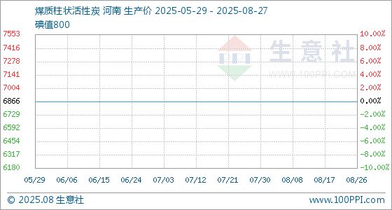 8月27日,生意社煤质柱状活性炭基准价为6866.67元/吨,与本月初持平。