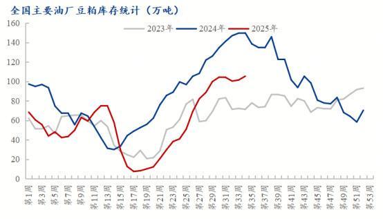 此外,港口及中间商库存虽因基差走弱而有所减少,但流通环节仍沉淀相当数量的库存,进一步加剧市场供应压力。 三、库存高企的深层成因 自二季度以来,国内油厂大豆压榨量持续处于高位,月度压榨量均维持在千万吨级别,奠定了豆粕供应宽松的格局。在此背景下,豆粕库存已连续数周维持在百万吨以上(104.31→104.16→100.35→101.47→105.33万吨)。尽管前两周因部分油厂胀库主动降开机以及阶段性提货增加,令库存一度小幅回落,但高供应的压力并未根本缓解。最新数据显示,第35周油厂开机率预计回升至71.07%,周度大豆压榨量将升至约250万吨的高位。豆粕产出随之增加,而下游消化能力有限,导致本就高企的库存再度累积,进一步加剧市场的供应压力。面对持续充足的供应和疲软的价格走势,下游采购心态更趋谨慎,普遍采取随用随采策略以规避库存风险,加剧了油厂端的库存压力,形成负向循环。。 四、高库存对市场的多重影响与机制扭曲 高库存使现货市场呈现"买方市场"特征。目前主流区域基差报价在-100至-150元/吨区间,处于历史低位。即便外盘因其他因素上涨,国内现货受库存压制跟涨乏力,形成"外强内弱"的分化格局。库存压力迫使油厂调整生产计划,部分企业开始降低开机率以缓解库存压力。现货交易更多采用基差合同模式,一口价交易量减少。下游点价策略更趋谨慎,多在盘面低点进行点价操作。 五、未来库存演变路径推演与关键节点 8-9月进口大豆到港量预计仍将保持较高水平,为油厂生产提供充足原料。随着季节转换,昼夜温差加大有利于大豆储存,油厂因原料保管压力减轻而维持高开机率的意愿较强,预计将继续保持高压榨水平,豆粕供应压力短期内难以得到有效缓解。需要关注的是,中美贸易关系仍存在不确定性,这可能对未来大豆采购节奏和供应格局带来变数,需保持密切关注。中美关税展期背景下,美国大豆仍无法进入中国市场。目前我国11月船期进口大豆采购仅1成,12月仅有零星采购,市场预期四季度至明年一季度进口大豆供应趋紧,豆粕产出量将跟随下滑,预计四季度国内豆粕将进入去库存阶段。 免责声明:Mysteel力求使用的信息准确、信息所述内容及观点的客观公正,但并不保证其是否需要进行必要变更。Mysteel提供的信息仅供客户决策参考,并不构成对客户决策的直接建议,客户不应以此取代自己的独立判断,客户做出的任何决策与Mysteel无关。本报告版权归Mysteel所有,未经许可,禁止转载,违者必究。 |