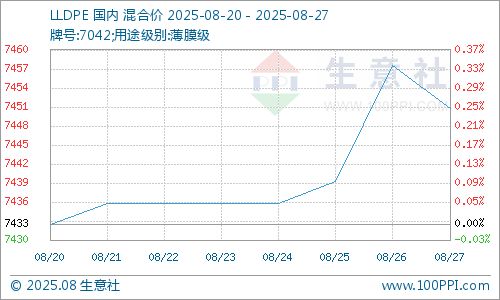 据生意社商品行情分析系统监测,LLDPE(7042)8月20日均价7433元/吨,8月27日均价在7451元/吨,上涨0.25%。LDPE(2426H)8月20日均价9616元/吨,8月27日均价在9633元/吨,上涨0.17%。HDPE(2426H)8月20日均价8000元/吨,8月27日均价在8000元/吨,报价持平。 近期聚乙烯行情窄幅运行为主,上涨空间有限。供应端,临近月底,现货资源将会减少,预售增加。需求端,正从淡季向旺季过渡,需求有所好转,农膜行业开工率回升,但市场反弹后成交跟进谨慎,限制价格上行空间。成本端,8月26日,国际原油期货收跌,成本端支撑松动。政策面对聚乙烯底部有一定的支撑。 短期供应压力有所缓解;9月即将进入需求旺季;国内政策面支撑;成本支撑松动,预计聚乙烯震荡偏强走势为主。 【大宗商品公式定价原理】 生意社基准价是基于价格大数据与生意社价格模型产生的交易指导价,又称生意社价格。可用于确定以下两种需求的交易结算价: |