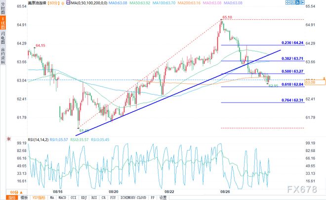 WTI1小时走势图上,油价未能突破65.00美元关口,并开始新一轮下跌,跌破64.50美元。 油价跌破了64.00美元处的一条关键看涨趋势线,为进一步下跌打开了空间。 此外,油价还跌破了自61.45美元摆动低点至65.10美元高点这波上涨行情的50%斐波那契回撤位。 WTI原油甚至跌破了63.50美元关口以及50小时简单移动平均线(50-hourSMA)。目前多头在63.00美元附近开始活跃。若油价迎来新一轮上涨,可能会在63.70美元附近遭遇阻力。 北京时间18:27,WTI原油报63.15美元/桶,跌幅0.16%。 【免责声明】本文仅代表作者本人观点,与汇通财经无关。汇通财经对文中陈述、观点判断保持中立,不对所包含内容的准确性、可靠性或完整性提供任何明示或暗示的保证,且不构成任何投资建议,请读者仅作参考,并自行承担全部风险与责任。 |