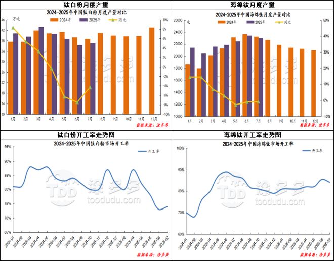 三、行业开工 攀矿控制原矿,钛矿市场开工不足。 市场部分工厂限产、检修,钛白粉市场开工不足。 大厂开工负荷下降,海绵钛价格或坚挺持稳。