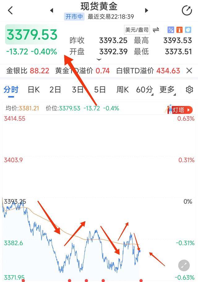 今日现货黄金主要在3370美元/盎司至3390美元/盎司之间上下波动。亚洲时段,金价接连失守3390、3380美元关口,随后退守3370美元/盎司。截至22时18分,现货黄金报3379.53美元/盎司,盘中最高触及3393.53美元/盎司,最低下探至3373.51美元/盎司。