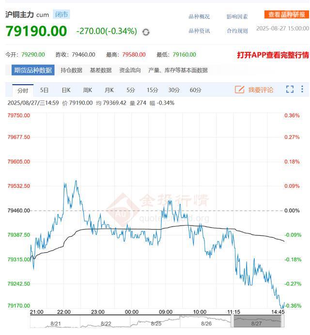 2025年8月28日沪铜主力最新价格及行情:期价承压下行!相关股票普跌。 8月28日,国内沪铜主力合约价格延续调整态势,现货市场情绪低迷传导至资本市场,铜产业链相关股票呈现普跌格局。当日沪铜主力合约(CU888)收报79190元/吨,较前一交易日下跌270元/吨,跌幅0.34%,盘中呈现“高开低走”态势,最高价触及79580元/吨,最低价下探79160元/吨,成交量较前一交易日减少8%,显示市场交投趋于谨慎。 期现价格联动:沪铜主力跌破关键支撑位 沪铜主力合约当日开盘于79290元/吨,开盘后迅速下探,午盘时段维持低位震荡,终盘收于79190元/吨,失守79200元/吨短期支撑位。从技术面看,5日均线与10日均线形成死叉,MACD指标绿色动能柱扩大,短期价格或面临进一步调整压力。现货市场方面,长江有色市场1#电解铜报价79350-79450元/吨,贴水200-贴水150元/吨,贸易商出货意愿增强,但下游加工企业采购积极性不足,市场成交以刚需为主。 股票市场表现:A股铜企普跌 北方铜业领跌 AB股市场: 北方铜业(000737) 当日领跌铜板块,收报12.21元/股,下跌0.48元/股,跌幅3.78%,公司近期公告的半年度业绩显示净利润同比下滑12%,叠加期货价格下跌,股价承压明显。 金田股份(601609) 跌幅次之,收报12.60元/股,下跌5.05%,该公司主营铜加工材,受下游消费疲软影响,市场对其三季度业绩预期降温。 铜牛信息(300895) 是当日唯一逆势上涨的铜相关个股,收报53.78元/股,上涨1.55%,其业务以IDC服务为主,与铜价关联度较低,股价表现独立于板块。 江西铜业(600362)、铜陵有色(000630) 等行业龙头分别下跌2.76%、2.70%,收报26.09元/股、4.33元/股,权重效应拖累板块指数。 港股及美股市场: 江西铜业股份(00358.HK) 表现相对抗跌,收报21.160港元/股,下跌0.56%,跌幅小于A股,反映出港股市场对周期股估值的相对理性。 南方铜业(SCCO.US) 前一交易日收报97.780美元/股,上涨0.79%,美股铜企与国内市场表现分化,主要受美元指数回调及美国本土需求数据回暖支撑。 期货市场联动:COMEX铜合约同步调整 当日纽约商品交易所(COMEX)铜期货合约全线下跌,其中: 2505HG25K合约 收报4.4235美元/磅,下跌0.0360美元/磅,跌幅0.81%; 2503HG25H合约 收报4.4580美元/磅,下跌0.0265美元/磅,跌幅0.59%; 远期合约2501HG25F跌幅0.78%,显示市场对中长期铜价预期趋于谨慎。 市场驱动因素分析 宏观面压制:国家统计局公布的8月制造业PMI为49.2,低于预期值49.5,显示国内工业需求复苏力度不足,铜作为工业金属的需求预期受到压制。 美元指数反弹:当日美元指数回升0.2%至103.5,压制以美元计价的大宗商品价格,COMEX铜价下跌对国内沪铜形成传导。 库存累积压力:上海期货交易所铜库存较前一周增加5000吨至8.2万吨,连续第三周累库,反映出短期供需格局偏向宽松。 后市展望 短期沪铜主力合约或考验79000元/吨整数关口支撑,若跌破该位置,可能进一步下探78500元/吨区间。股票市场方面,铜产业链个股需关注三季度业绩预告及下游消费数据的边际变化,建议投资者保持谨慎,重点关注江西铜业、铜陵有色等龙头企业的估值修复机会。期货市场需跟踪美联储9月议息会议动向及国内基建投资落地情况,预计在宏观不确定性消除前,铜价维持区间震荡走势。 沪铜主力最新价格: