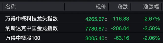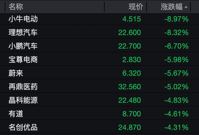 纳斯达克中国金龙指数收跌2.58%,热门中概股普跌。理想汽车跌超8%,小鹏汽车跌近7%,蔚来跌超5%,京东跌超3%。