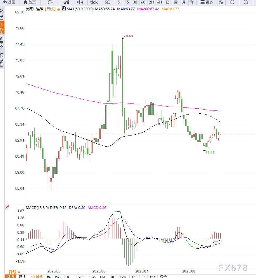 周四早盘,布伦特原油期货下跌0.46%,报每桶67.74美元;西德克萨斯中质原油(WTI)下跌0.56%,报每桶63.79美元,结束了前一交易日的涨势。 ![]() Sycamore指出:“印度预计将在短期内继续从俄罗斯进口原油,这将限制新关税对全球供应面的直接冲击。” 除了需求前景,地缘冲突进一步扰动市场。俄罗斯近期对乌克兰能源和天然气运输设施发动大规模无人机攻击,波及六个地区,导致超过10万人断电。此类事件加剧了市场对能源供应中断的担忧,也为油价提供了部分支撑。 另一支撑因素来自美国货币政策前景。市场普遍预期美联储可能在9月16-17日会议上考虑降息,以提振经济活动,从而间接增加能源消费。 纽约联储主席John Williams表示:“利率未来可能下降,但政策制定者仍需等待更多经济数据来判断是否合适在9月会议采取行动。” 从日线走势观察,美原油在60美元一线获得多次支撑,形成阶段性底部,而65美元附近的压力仍未突破。结合库存数据表现来看,市场虽具备反弹动力,但持续性仍取决于需求能否延续旺盛。 若未来库存继续下降并伴随需求保持强劲,油价有望突破65美元阻力,否则不排除再度回测60美元关口。 ![]() 从当前走势来看,油价的多空因素交织:库存下降和地缘紧张提供了支撑,而美国需求进入季节性低谷、印度面临关税压力则限制了上行空间。 短期内,市场或维持在60-65美元区间震荡,未来走向将更多取决于美联储利率决策与印度能源政策的具体反应。 |