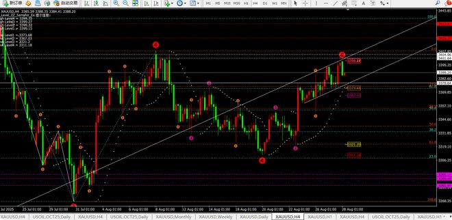 综合而言: 日线跌破昨日低点3373一线转为震荡走势,没跌破之前还有冲高的可能。而目前4小时震荡偏向回落短期关注3378一线的支撑。所以短期关注3374-3398的区间破位情况。 策略: 【1】这个4小时如果先给得到3394-95附近可以空,防守3401即可,目标3385-3380【2】在3379-81附近可以多,损3374,目标看3390-3395破位3399看3405-3415 【3】下破3373-74再次多在3360-62附近,具体等提示。 【以上思路仅属于个人观点,谨慎参考;并不构成投资依据。投资有风险,入市需谨慎;理性参考,风险自享】 |