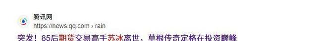 2.腾讯网:突发!85后期货交易高手苏冰离世,草根传奇定格在投资巅峰