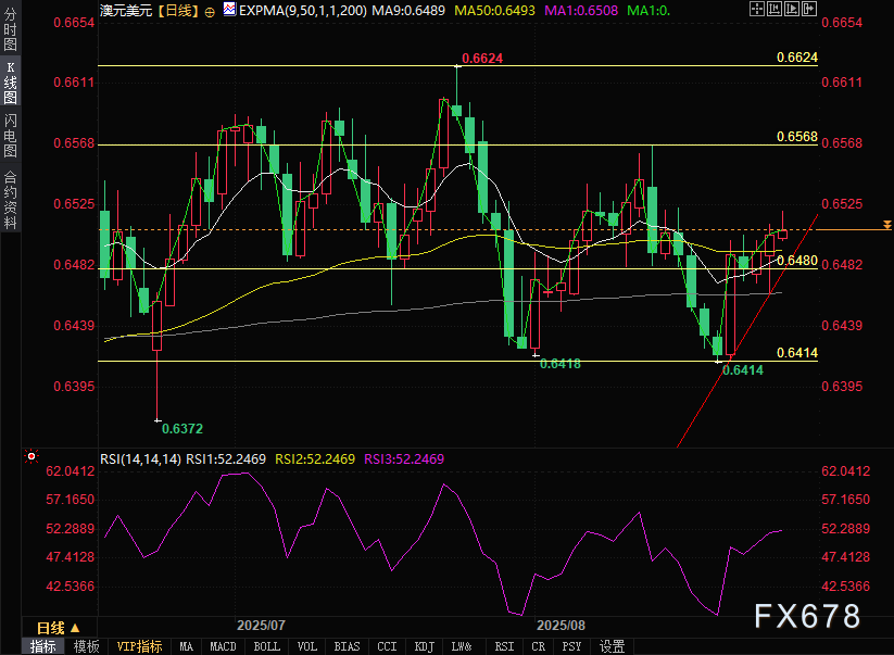 周四(8月28日)欧市早盘时段,澳元兑美元震荡上涨,有望录得连续第三个交易日走高。澳元兑美元现于0.6510附近震荡上涨,周四亚市时段涨幅曾一度达0.23%,整体呈看涨趋势。数据显示澳洲第二季度支出增长0.2%,较前值-0.1%有所回升,但低于预期值0.7%。但由于市场对美联储独立性的担忧令美元承压,澳元兑美元汇率获得支撑。 ![]() 据《金融时报》周四报道,中国芯片制造商正寻求在明年将国产人工智能处理器总产量提高两倍。 美国总统特朗普警告称若北京拒绝向美国供应稀土磁铁,将对中国商品征收200%关税后,而后交易员普遍持谨慎态度。需要指出的是,作为密切的贸易伙伴,中国经济形势的任何变化都可能对澳元产生影响。 澳元走强,美元在GDP修正值公布前承压 美元指数(DXY)目前震荡偏弱,现报98.15。交易员正等待周四晚些公布的美国第二季度GDP修正值数据,市场预计美国第二季度经济年化增长率将达到3.1%。若数据表现超预期,可能提振美元并对该货币对构成压力。 美国总统特朗普于本周二宣布解除美联储理事丽莎·库克在美联储董事会的职务,这被视为111年历史上首次出现总统罢免美联储理事的事件。鉴于特朗普持续向美联储施压要求降低借贷成本,此举可能增加大幅降息的可能性。 根据CME美联储观察工具的数据,交易员目前预计美联储9月会议至少降息25个基点的概率超过88%,高于上周的82%。 特朗普已提名白宫经济学家斯蒂芬·米兰担任任期至1月的临时席位,并暗示其也可能接替库克的职位。与此同时,《华尔街日报》报道称,前世界银行行长戴维·马尔帕斯是另一位潜在候选人。 据彭博社报道,特朗普总统威胁对先进技术和半导体征收“后续附加关税”并实施出口限制,以报复针对美国科技公司的数字服务税。 美联储主席杰罗姆·鲍威尔上周五在杰克逊霍尔研讨会上表示,就业市场风险正在上升,但同时也指出通胀仍是威胁,决策尚未最终确定。鲍威尔还称,美联储仍然认为不必仅基于就业可能超过最大可持续水平的不确定估计而收紧政策。 澳洲联储8月货币政策会议纪要显示,董事会成员一致认为未来一年可能需要进一步降息。会议纪要还表明,政策制定者认为降息步伐将取决于后续数据和全球风险平衡。 澳元兑美元技术面转强 周四澳元兑美元交投于0.6510附近。日线图技术分析显示,该货币对目前小幅攀升于上升趋势线上方,暗示看涨动能正在酝酿。此外,汇价站稳9日指数移动平均线(EMA)(0.6489)上方,表明短期价格动能正在增强。 14日相对强弱指数(RSI)在50中线上方运行,显示看涨趋势短期占据主导。 上行方面,澳元兑美元或将试探8月14日触及的月内高点0.6568区域,继而挑战7月24日创下的九个月高点0.6624。 下行方面,近期支撑位位于0.6500心理关口,该水平与50日EMA(0.6493)及9日EMA(0.6489)形成重合支撑。若跌破该支撑区域,将削弱中短期价格动能,汇价可能面临下行压力并下探0.6480附近的上升趋势线。进一步下跌或将推动澳元兑美元测试8月21日录得的两个月低点0.6414。 ![]() 北京时间14:22,澳元兑美元交投于0.6512/13。 |