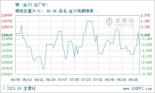 金川集团于2025年8月28日电解镍(大板)出厂价报122900元/吨,较上一交易日下调1600元/吨。