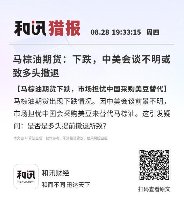 【马棕油期货下跌,市场担忧中国采购美豆替代】马棕油期货出现下跌情况。因中美会谈前景不明,市场担忧中国会采购美豆来替代马棕油。这引发疑问:是否是多头提前撤退所致?