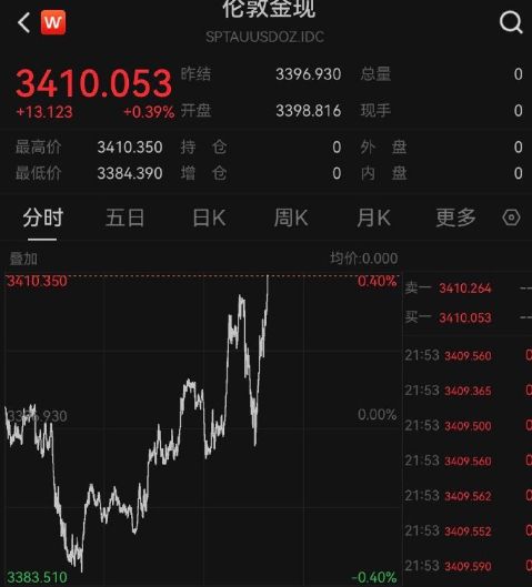 中概股方面,纳斯达克中国金龙指数震荡走高,个股方面,金山云涨逾7%,迅雷涨超6%。 黄金则小幅拉升,截至发稿,现货黄金升破3400美元/盎司。