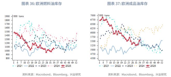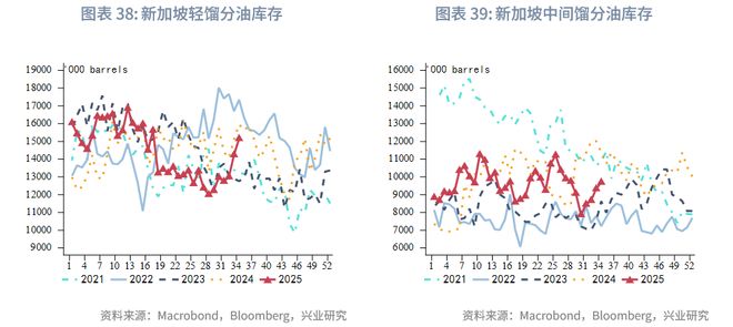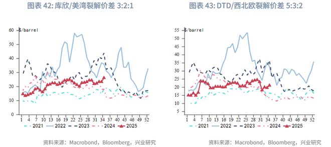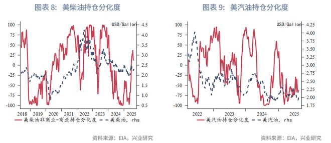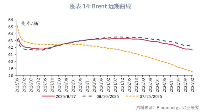 2.2 检修季到来,定价中心开始累库 大规模炼厂检修往往导致原油贴水加剧。欧洲秋季检修量较2011-2019均值高出1300万桶,可能导致2025年第三季度欧洲地区季节性累库,而2011–2019均值为去库。欧洲9月平衡环比趋松,因来自美洲与西非的8月装船货源增加,这会给Brent月差施加压力。 WTI亦面临类似压力。即使印度炼厂继续超常规采购,WTI海外需求或仍将走弱。9至10月欧洲炼厂加工量季节性下降,OPEC+供应增加将削弱亚洲对西方油种的需求。 不过正如我们前面所提及的,今年以来市场普遍看空,但低库存与未见明显累库抑制了价格崩盘,在库存未出现持续、显著累积前,市场很难按照平衡表所预示的极端累库完全定价。同时从实际操作层面而言,原油曲线的陡峭Back结构其实也抑制了空头持仓的意愿。