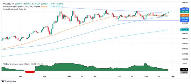 24K99讯 周四(8月29日),现货黄金价格大幅攀升并触及五周高点,主要归因于美元走软和避险需求支撑,反映投资者对美国总统特朗普试图解雇美联储理事、挑战美联储独立性持续感到焦虑不安。 现货黄金周四收盘攀升19.30美元,涨幅近0.6%,报3416.78美元/盎司,是7月13日以来最高。 FXStreet分析师Christian Borjon Valencia指出,因围绕美联储独立性的争斗提振避险需求,金价升至3400美元/盎司上方,并创下五周高位。美元以及美国国债收益率下降也刺激金价走高。 美元指数周四下跌0.5%,使得以美元计价的黄金对外币买家来说变得相对划算。 美国10年期美国国债收益率周四下跌2.5个基点,至4.215%。美国实际收益率(由名义收益率减去通胀预期计算得出)也下降3个基点,至1.785%。 围绕美联储独立性的历史性斗争 美元近期再次承压,部分原因来自美国总统特朗普加强影响货币政策的行动,包括试图撤换美联储理事库克。库克周四已提出诉讼,声称特朗普无权将她免职。 独立金属交易员Tai Wong说:“过去一个多礼拜以来,出于对美联储独立性的持续担忧,黄金一直低调但稳定的上涨。特朗普给的压力引发各界对联邦公开市场委员会(FOMC)可能加速降息、并长期实施低利率政策的不安,这对黄金是利多。” 美国彭博社周四报道称,美联储理事库克起诉美国总统特朗普,因为特朗普试图以涉嫌抵押贷款欺诈为由解雇她,从而开启了一场关于美国中央银行独立性的历史性斗争。 RJO Futures资深市场策略师Daniel Pavilonis说:“我认为这在短期内有利于黄金。我预测到今年年底前可能涨到约3700美元/盎司。” 聚焦美国PCE通胀数据 纽约联储主席威廉斯周三在CNBC采访中表示,利率有可能下调,但决策者必须先观察即将公布的经济数据,才能决定在9月 16-17日的会议上降息是否适当。 在此之前,最受关注的数据包括周五将公布的PCE物价指数,以及一周后的非农就业报告。 芝商所(CME)的“美联储观察工具”显示,市场目前押注美联储9月有超过87%的机率降息25个基点。 投资人正在等待本周五公布的美国7月个人消费支出(PCE)物价指数,这是美联储偏好观察的通胀数据。 经济学家预计,美国经济分析局周五公布的数据将显示,7月核心PCE物价指数环比上涨0.3%,同比增速从2.8%加速至2.9%。 黄金本身不生息,因此通常在低利率环境中表现良好,又因为本身具有避险性质,面对经济不确定性时,投资魅力往往提升。 BMO Global Asset Management董事总经理Bipan Rai表示:“市场已预期9月将降息约25个基点,但如果核心PCE数据略高于预期,那么应当提醒市场美联储并不一定落后于形势。” Insight Investment 外汇解决方案主管Francesca Fornasari表示:“目前的经济状况并不像即将大幅走弱的样子。一切最终仍取决于美联储的决定,尤其是非农就业数据。我怀疑下周的数据将受到极度关注。” 黄金技术分析 FXStreet分析师Christian Borjon Valencia指出,从技术面来看,金价近期有望挑战3450美元/盎司。 Valencia写道,在突破3400美元/盎司之后,黄金的上升趋势将继续,这为测试7月23日高点3438美元/盎司打开了大门。相对强弱指数(RSI)表明买家正在获得动力。 Valencia称,如果金价上涨超过3438美元/盎司,下一个关注区域将是6月16日的高点3452美元/盎司,接下来是历史高点3500美元/盎司。 (现货黄金日线图 来源:FXStreet) 另一方面,Valencia补充道,相反,如果金价跌破20日简单移动平均线(SMA)3364美元/盎司,卖家将瞄准50日移动平均线3348美元/盎司,随后是100日移动平均线3321美元/盎司。 |