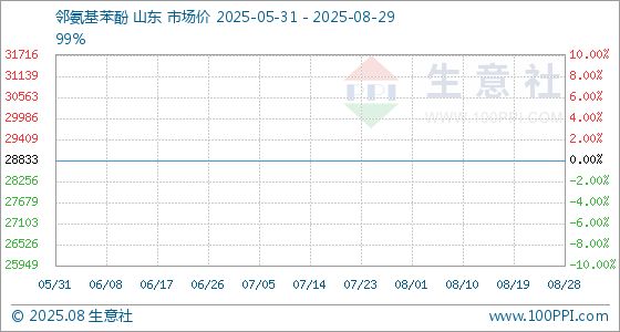 8月29日,生意社邻氨基苯酚基准价为28833.33元/吨,与本月初持平。