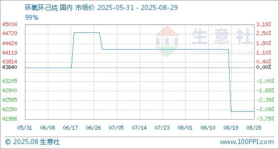 8月29日,生意社环氧环己烷基准价为42240.00元/吨,与本月初(44240.00元/吨)相比,下降了4.52%。