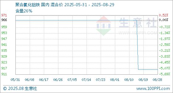 8月29日,生意社聚合氯化铝铁基准价为916.67元/吨,与本月初(966.67元/吨)相比,下降了5.17%。
