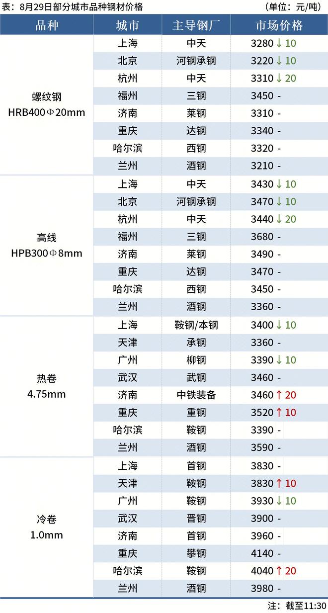 ◎钢坯:29日唐山钢坯直发成交偏弱,仓储现货价格报3080含税出库,下游成品材价格主流稳中趋弱,整体成交放缓,预计午后钢坯出厂价格或下调10-20。(单位:元/吨) ◎废钢:29日上海废钢稳,具体报价:钢板料≥8mm2210-2270,钢板料≥6mm2170-2210,工角槽≥6mm2140-2200,工角槽≥4mm2110-2150,重废2050-2110,中废剪切料1970-2010,小废剪切料1810-1870,轻废1590-1650,统料1530-1570,油屑1320-1360不含税。(单位:元/吨) ◎生铁:29日全国炼钢生铁报价主稳个调。临汾2800武安2730唐山2670莱芜2720临沂2720福建2690内蒙2520昆明2440新疆2390辽阳2670湖北2550。(单位:元/吨) ◎焦炭:29日港口焦炭现货市场暂稳运行。港口贸易汽运集港情绪一般,两港库存较上一工作日持稳。日照港46,青岛港83,两港总库存129较上周减1。现港口各品种焦炭价格如下: 贸易现汇出库: 准一级(湿熄)现货1480元/吨,准一级(干熄)现货1620元/吨,一级(湿熄)现货1580元/吨,焦粒现货1210元/吨,焦粉现货1020元/吨。 免责声明:Mysteel力求使用的信息准确、信息所述内容及观点的客观公正,但并不保证其是否需要进行必要变更。Mysteel提供的信息仅供客户决策参考,并不构成对客户决策的直接建议,客户不应以此取代自己的独立判断,客户做出的任何决策与Mysteel无关。本报告版权归Mysteel所有,未经许可,禁止转载,违者必究。 |