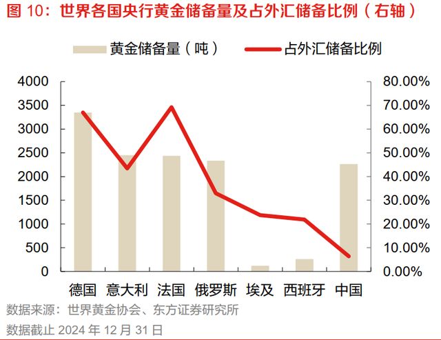咱们国家也在持续买,这几年每年大概买几十吨的黄金,到去年底黄金总量达到2200多吨,排名大概第七,但是考虑到咱们国家的外汇规模庞大,这些黄金占外汇的比例只有6.5%,跟德国、意大利、发过、俄罗斯等其他国家相比差远了,甚至还不如埃及。