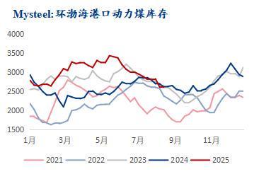 数据来源:钢联数据 三、下游需求疲软 观望情绪浓厚 从需求端来看,北方气温有所回落,居民用电需求逐步减退,但南方大部分地区仍有高温天气,终端日耗整体虽有所下降但仍处于高位波动阶段。Mysteel493家样本电厂厂存煤从月初10028万吨降至月末9821万吨,但可用天数稳定在22天以上,显著高于18天的安全阈值,当前需求端呈现“北弱南强”的分化格局,库存分布不均问题突出,导致南方电厂对优质煤采购意愿强于高硫混煤,对价格有边际支撑。 下游市场整体呈现观望态势,仅维持刚需压价采购,交投活跃度不高,实际成交有限。当前需求端暂无利好驱动,采购节奏无大规模释放,伴随天气逐渐降温,淡季特征显现,下游补库意愿或将再次下降。