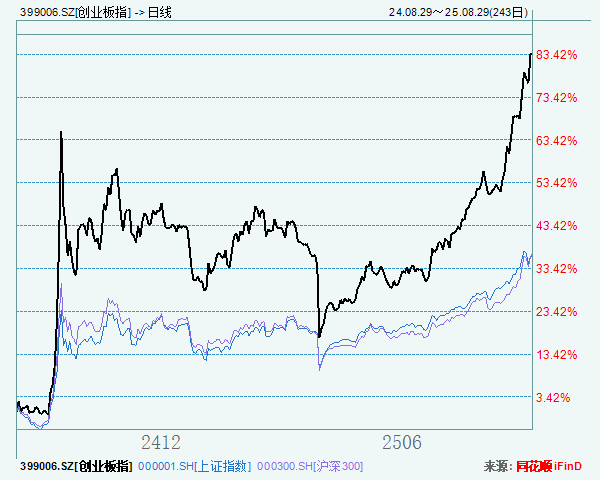 ![]() 为什么近一年创业板跑赢大盘近50%? 我们前面发文解读过,A股近期走高主要基于宏观和产业政策持续利好、流动性仍旧宽松、部分产业基本面复苏显著。而近期,创指相较于大盘跑出了明显超额收益,动力何在? ![]() 一是,近期美联储转鸽,市场认为9月降息概率大幅增加,国内利率也一直处于下行通道。前期我们多次分享,流动性宽松的大背景下,成长股更受益,而创业板指是A股最具代表性的成长风格宽基指数之一(甚至没有之一); 二是赛道景气度持续高位。创业板权重板块如新能源、生物医药、AI、半导体等,均处于产业上行周期,业绩确定性较高; 三是情绪与叙事共振。国产替代、AI自主化、反内卷等主题持续发酵,带动科技龙头领涨,创业板成为重要情绪出口。 创业板这个指数本身覆盖多个新兴产业,在行业轮动中能持续受益,不易踏空,于是成了不少投资者的选择。 【今日操作】根据策略继续定投 今天是月底,根据之前定投的策略介绍,是我们账户买入的日期。截至20250828,创业板的PB是4.9794X,近1440个交易日(6年)的分位数是47.5%,满足买入条件,本次申购金额是20000/4.9794=4016元。 ![]() 以上相关产品可以关注天弘创业板ETF联接(A:001592;C:001593),天弘中证红利低波100(A:008114;C:008115),上支付宝、天天基金、京东金融搜索“天弘基金”即可了解。 风险提示:本人持仓均为天弘基金旗下产品,仅客观展提示,投资者应根据自身风险承受能力合理配置持仓。定投非储蓄,不能规避基金固有风险,不能保证投资者获得收益。观点仅供参考,不构成投资建议,市场有风险,投资需谨慎。投资者在购买基金前应仔细阅读基金招募说明书与基金合同,请根据自身投资目的、投资期限、投资经验等因素充分考虑自身的风险承受能力,在了解产品情况及销售适当性意见的基础上,理性判断并谨慎做出投资决策。指数基金存在跟踪误差,指数业绩表现不代表具体产品业绩表现。定投非储蓄,不能规避基金固有风险,不能保证投资者获得收益。 |